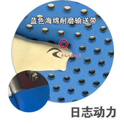 • 藍(lán)色海棉耐磨食品帶 打孔 耐油 輸送帶 日志動(dòng)力